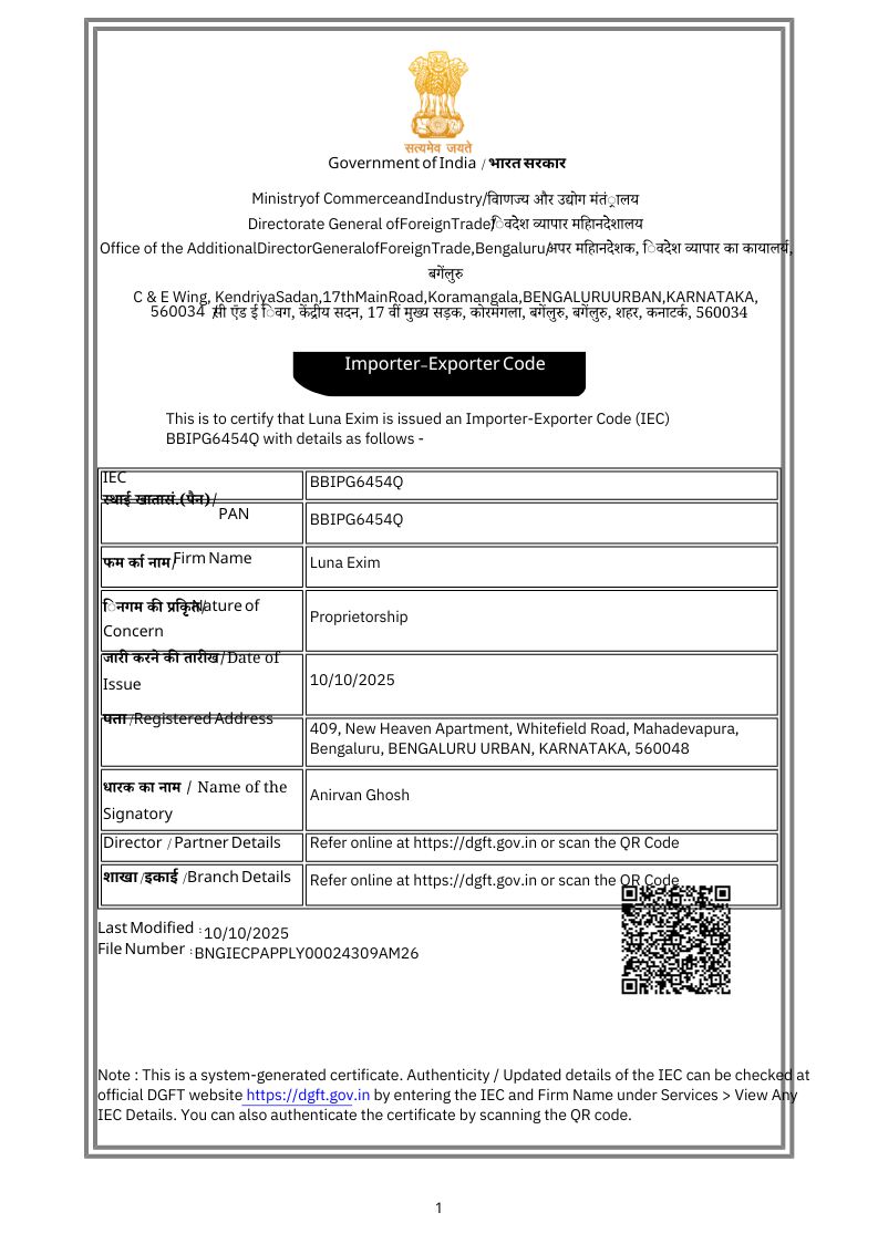 Issued by Director General of Foreign Trade (DGFT), Government of India.